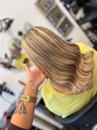 Perfekte Farbharmonie: Wir passen die Extensions präzise an deine Haarfarbe an – inklusive Strähnen, Balayage oder individuellen Farbmischungen.